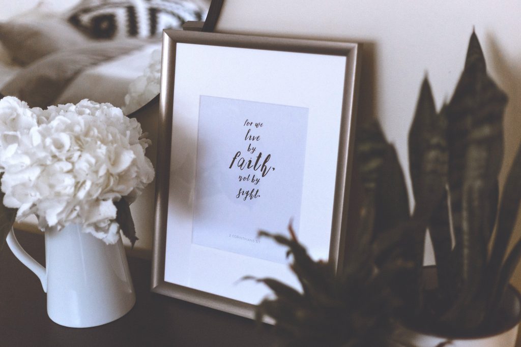 Display your handwriting on the wall. Mount a blank canvas and use some acrylic paints to write down your favorite quote, song lyrics, a line from a poem, an expression, Bible verse, or any other written message that you fancy. Frame it and hang it up to give your space some personal touch!