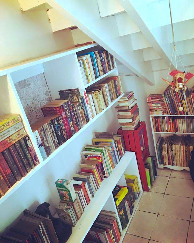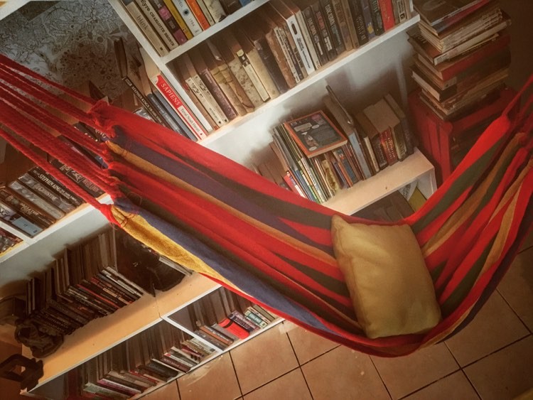 Here’s how she did it: “I painted everything, including the stairs overhead, white. The space didn’t have shelves, so I had someone take down the shelves from my daughter’s room and put them up in the library. She didn’t use those shelves because they were too high to be any good. I painted the shelves white, too. And then I moved in most of our books, put in a hammock, and now, all it needs is a comfortable armchair, which I’m still looking for, and space would be complete.”