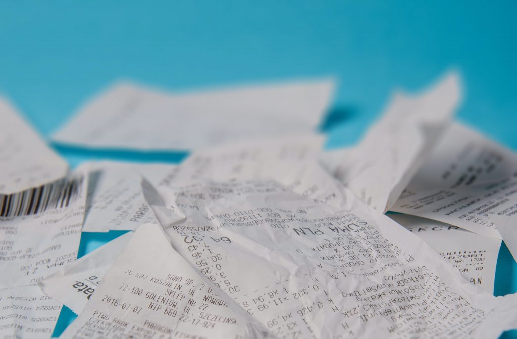 Menus, receipts, old bills