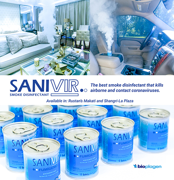 Sanivir Smoke is available at Rustan’s Department Stores and online shops: Stork.ph, Shopee, Nest Genie, and Lazada. You may also call our Sanivir Hotlines: Shelley Vergara 0971 557 5445; office (632) 8371 3936, (632) 7411 2620.