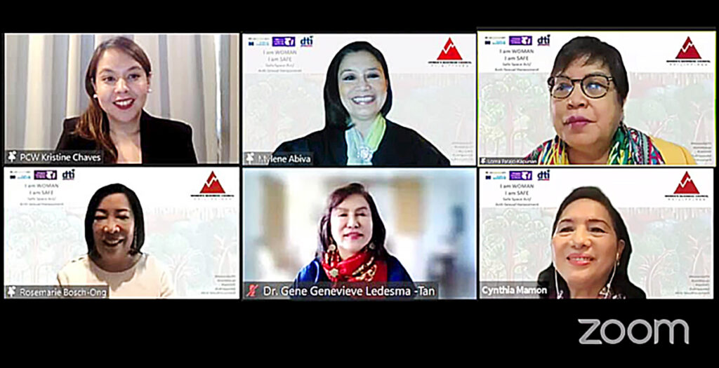 Concluding the webinar series was the topic “I am Safe: Ensuring Safety—Sexual Harassment- and Discrimination-free Workplace.” It was an honor for me to be invited as a case speaker together with other renowned women leaders.