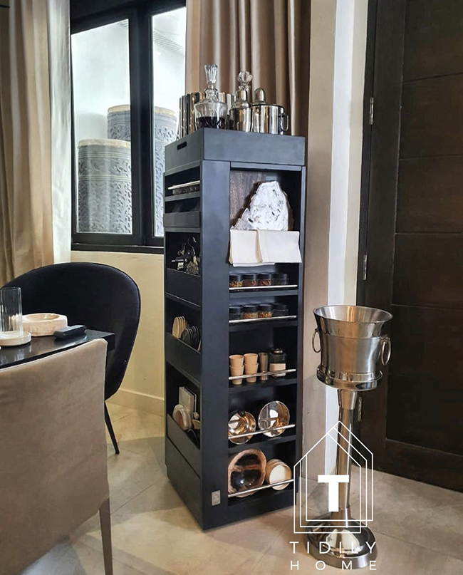 After decluttering, you have to figure out which accessories can bring the most form and function to your abode. Take for example this multi-function caddy by Tidily Home, which serves as a lovely piece for different items—from school supplies and pantry essentials to beauty products and even liquor.