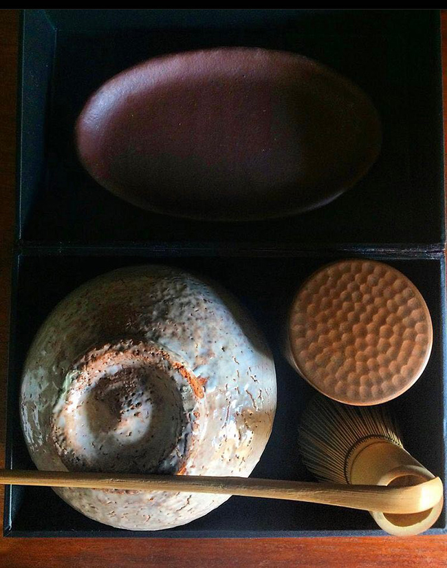 The topmost shelf is home to Ricci’s collection of utensils for traditional Japanese chado, loosely translated as tea ceremony, or way of tea. The exquisite highlights include a traveling chabako (box for tea utensils), seasonal chawan (bowls for winter, spring, summer, autumn), a cinnabar tea caddy, tea whisk, incense holder, a vase for an informal ikebana and chabana (tea flowers), water dipper, cast iron tea warmer, and water receptacle.
