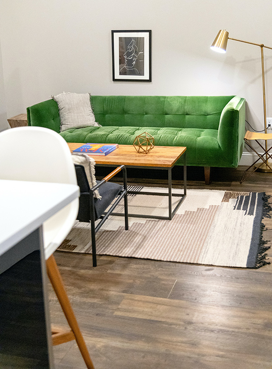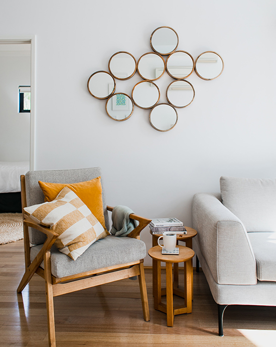 “Choose a focal point—a standout piece in a beautiful color is all you need to improve a space,” she said.