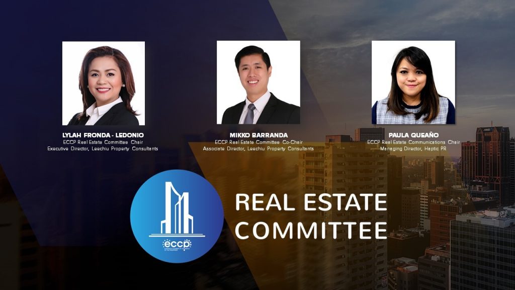 On the committee’s advocacy and priorities, ECCP Real Estate Committee chair Lylah Fronda-Ledonio stated, “The committee serves as the catalyst in discussing and deriving common positions on issues and matters that impacts the real estate industry and its stakeholders. There is no better time to work together than now, as we face unprecedented challenges. Our commitment is to create a platform of idea exchange and best practices most relevant in these times; all in the spirit of collaboration. Our focus is to bring together key players, insights, and relevant data that will serve as a guide into making business decisions in real estate.”