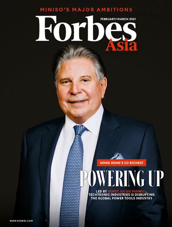 Horst Julius Pudwill (No. 12, $6.7 billion), whose net wealth was up 81%, is featured on the cover of the latest issue of Forbes Asia. Shares in his Techtronic Industries jumped on booming sales of power tools and floorcare products.