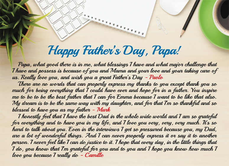 Manuel B. Villar, Jr., the rags-to-riches billionaire, is many things to many people—a politician, one-time presidential aspirant, real estate and retail tycoon, kingmaker and so much more but to his three children—Vista Land president Manuel Paolo Villar, Public Works Secretary Mark Villar and Las Piñas Rep. Camille Villar, he is, more than anything else, the king of their home, the best father they could ever have. Today, as the country celebrates Father’s Day, the Villar children pay tribute to the man they fondly call Papa. This is Manny Villar in the words of his children as told to The Star’s Iris Gonzales.