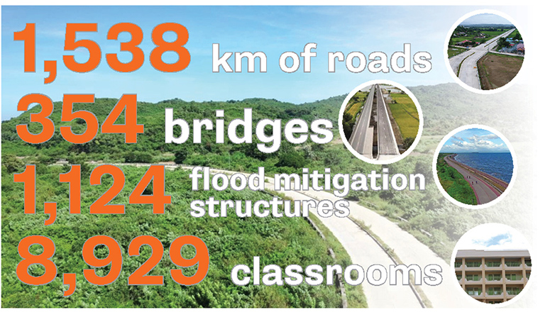 “A total of 1,537.77 kilometers of newly built, rehabilitated and widened roads, including bypasses, missing links, farm-to-market roads, seaports and airports, to trades and industries, economic zones and other road constructions were accomplished,” enthuses Secretary Villar.