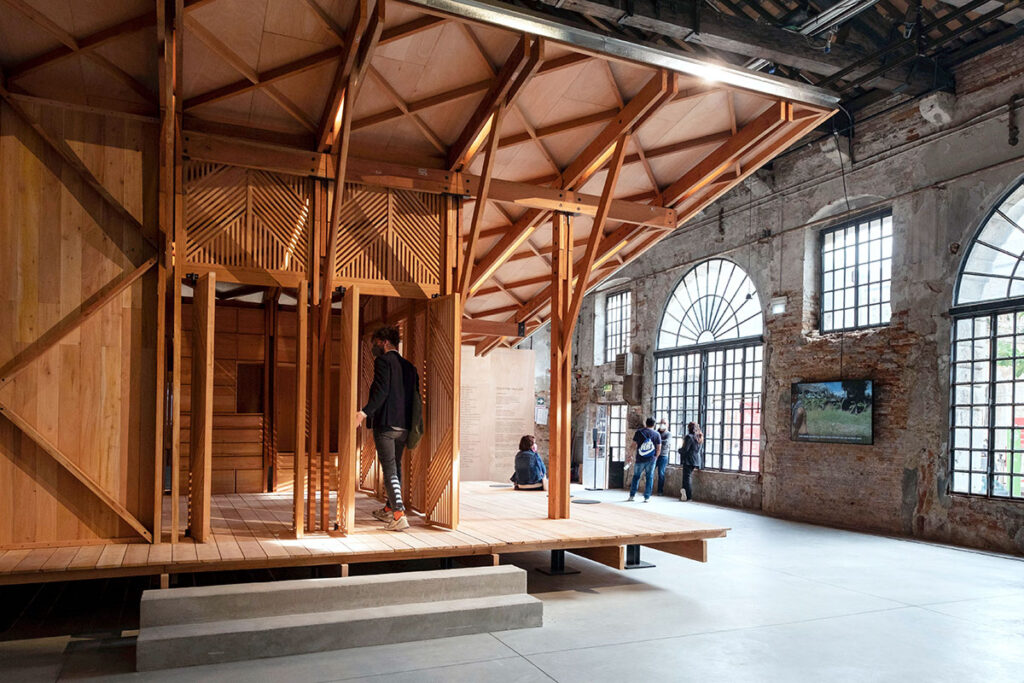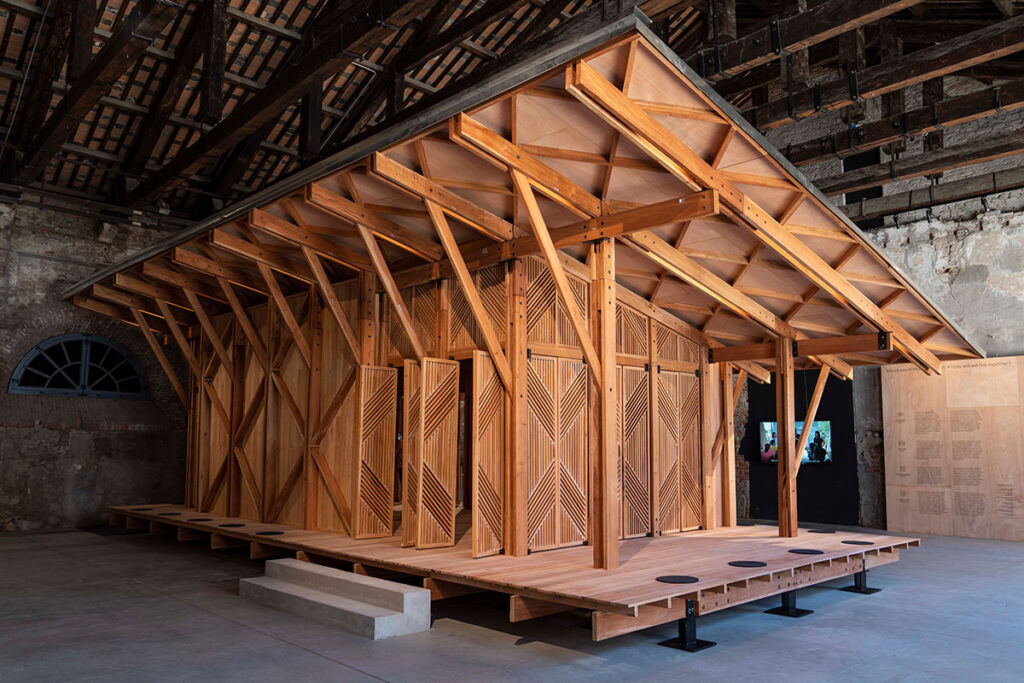 The construction of the “Structures of Mutual Support” wooden pavilion began in October 2019 and was completed after four months. The award-winning structure was built in Angat, Bulacan and dismantled for shipping to Venice for the exhibition.