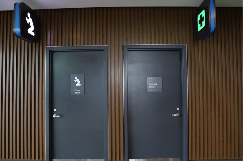 Restrooms will provide all-gender accommodations for transgender, non-binary identifying individuals, and cis-gender people traveling with opposite-sex children or elderly companions. There will be nursing stations for moms traveling with their babies, and prayer rooms, each with a foot-washing area for Muslims.