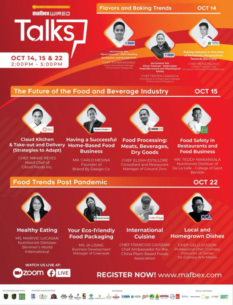 The highly-awaited MAFBEX webinar series will also be back with three seminars scheduled on October 14, 15, and 22. Featuring different guests, MAFBEX Talks will be useful to professionals and students aiming to be in the F&B industry.