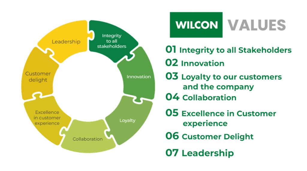 These core values—Integrity to all Stakeholders, Innovation, Loyalty to our Customers and the Company, Collaboration, Excellence in Customer Experience, Customer Delight, and Leadership—will surely make Wilcon ready for business transformation and future successes.