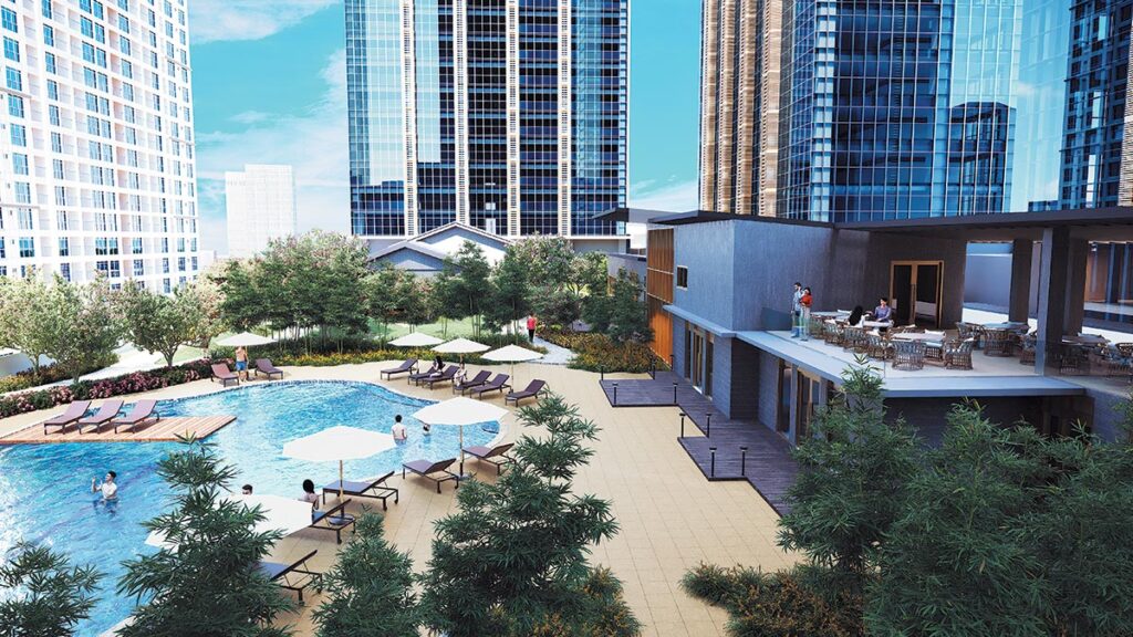 The Seasons Residences rises next to Grand Hyatt Manila within Grand Central Park, a master-planned community developed by Federal Land in Bonifacio Global City.