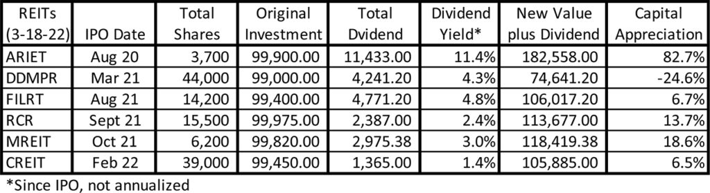 If you invested approximately P100,000 at the REITs’ IPO price, below are the new investment values based on share prices as of March 18, 2022 inclusive of total dividend declared after listing.