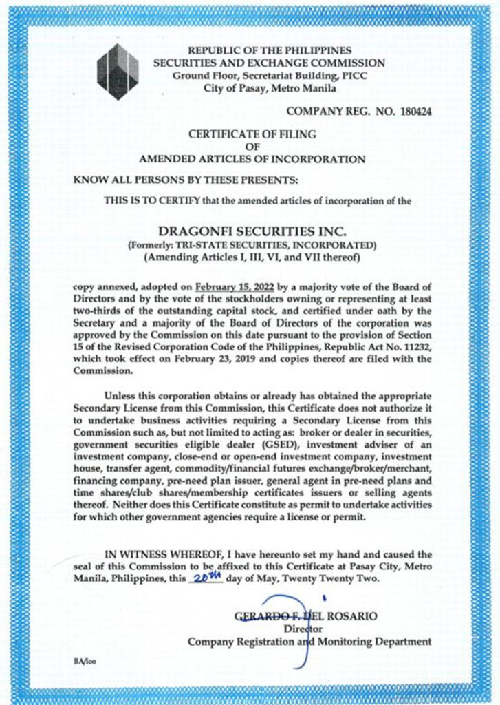 Tristate Securities Inc is now Dragonfi Securities Inc