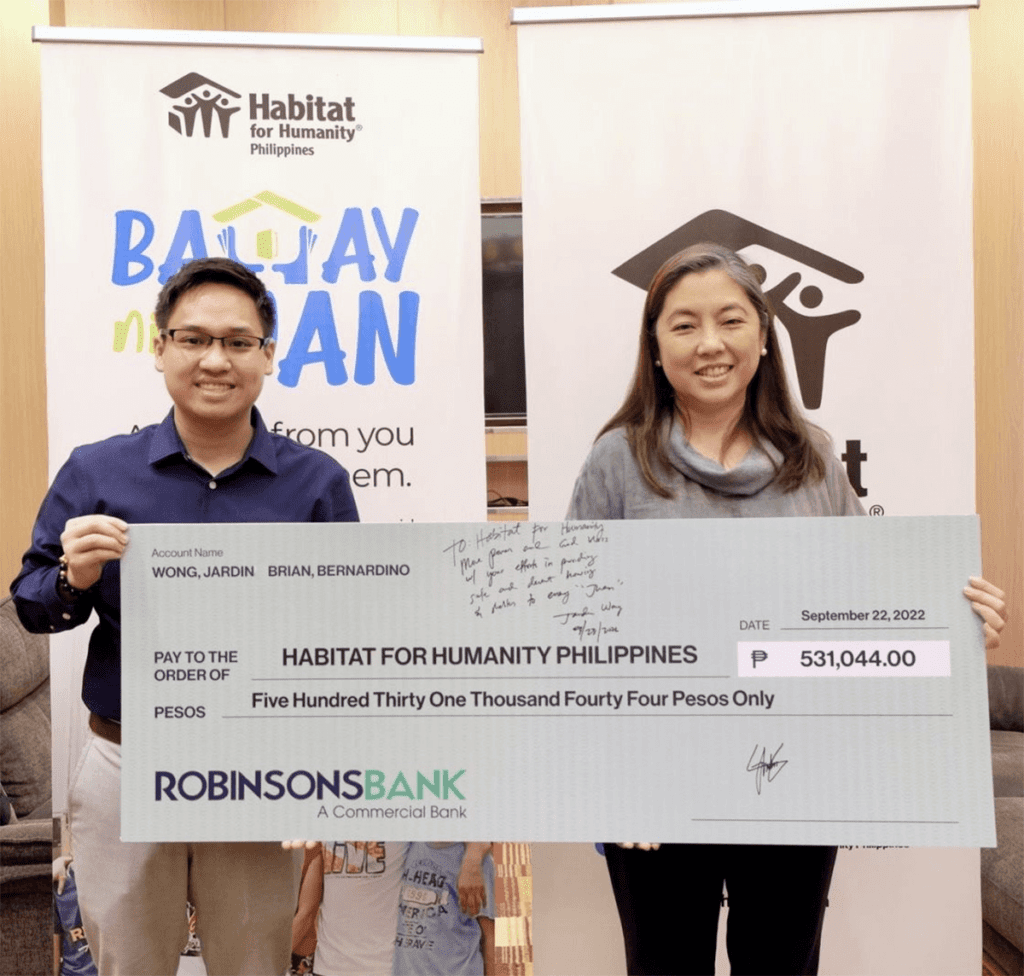 The amount was raised during Wong’s birthday celebration for a cause last September 3, in which his family and friends were encouraged to donate to Habitat Philippines instead of giving gifts.