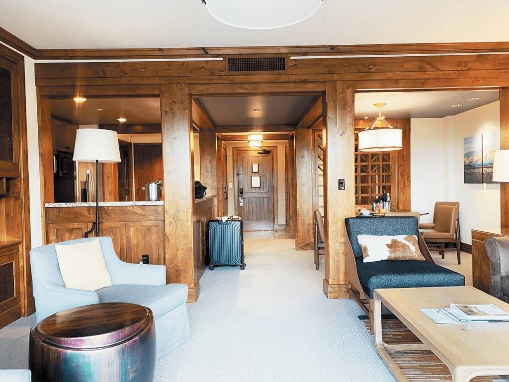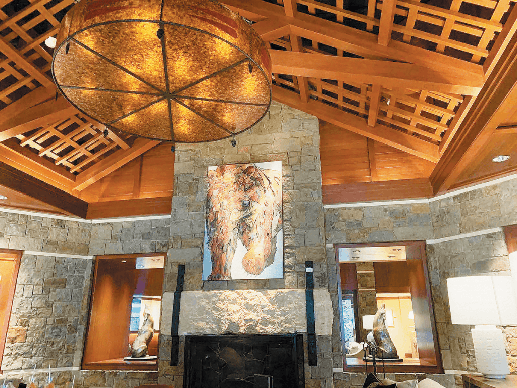 Craftsmanship is everywhere—from the home elevator fitted with panels of leather; pockets of fireplaces that will warm your heart and soul; high-ceilinged dining places; huge glass windows in the sprawling suites which open to your very own veranda; charming draperies and artwork, logs masterfully created on top of the other—ah truly a feast for the senses.