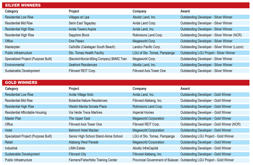Gotianun-Yap’s companies – Filinvest REIT Corp. and Filinvest Alabang Inc. – won a total of three golds and a silver.