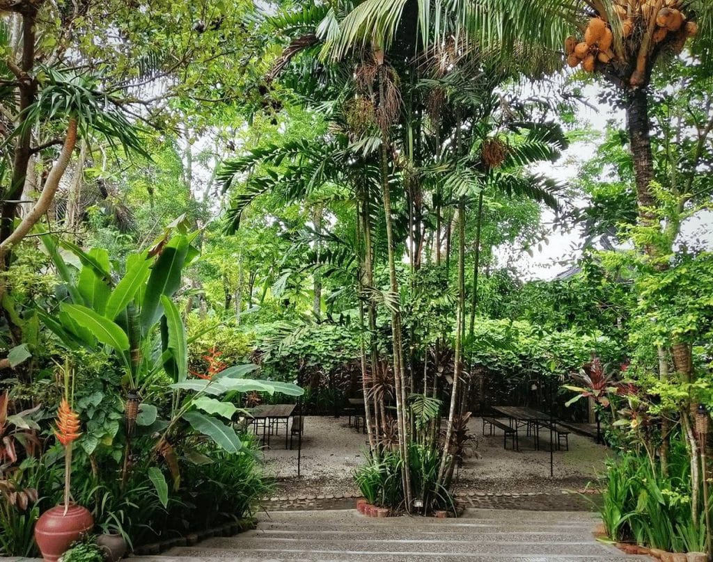 The “wildness” of the estate is its charm. While the landscape is obviously trimmed and maintained, the lush greenery is being allowed to grow abundantly and naturally on its own. The gazebo’s natural roof, for example, are the vines that creep every which way, woven into a sunshade for diners.