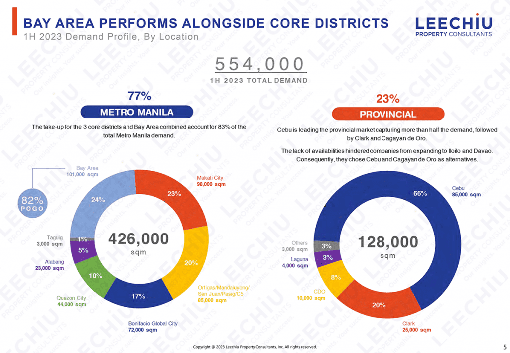 In the case of the Philippines, demand is coming from Philippine Offshore Gaming Operators (POGOs) which rented 88,000 square meters (sqm) in the first half of 2023.