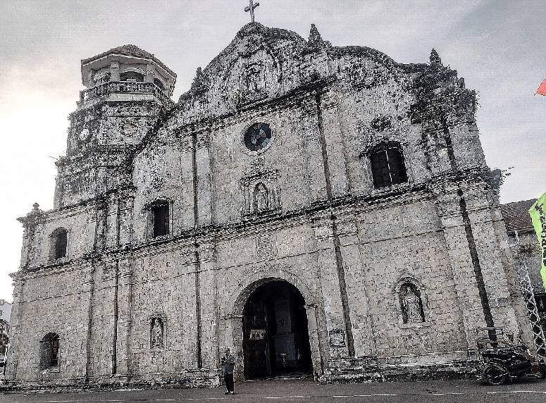 Farther south in the quiet town of Dumalag, Capiz is the St. Martin of Tours Parish. This church was founded by the Augustinians who dedicated it to St. Martin, Bishop of Tours, and patron saint of soldiers. The exterior was made from yellow sandstone with small buttresses at the side. We arrived at noontime with hardly any people on the streets. When we entered the church, an old lady approached us. I thought she would tell us that the church was closed but instead she opened the lights and the doors and bedazzled us with the grandeur of the church with its high painted ceilings, elaborate light fixtures and ornate carvings.