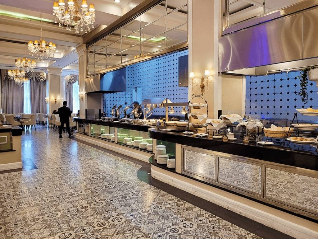 The hotel has beautifully designed rooms ranging from deluxe rooms, junior suites, premier suites, and an Army Navy Club Suite, also known as the Presidential Suite. The neutral nude tones dominating the room and touches of gold hardware and nostalgic machuca tiles, make each room feel light, yet luxurious. Each room is equipped with modern conveniences like a flat-screen TV, private bathroom, and a small coffee and tea making station.