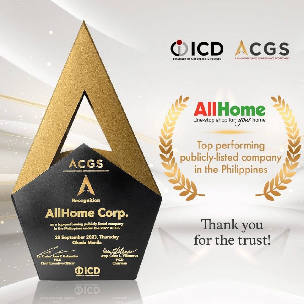 The recognition best exemplifies AllHome’s adoption of best practices that makes it at par with companies who contribute to a stronger and more robust corporate governance culture in the region.