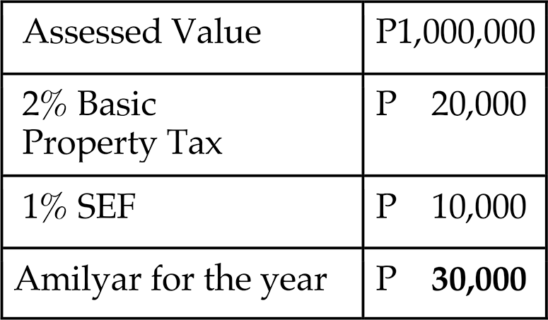 This tax, commonly referred to as amilyar in the vernacular, covers residential, commercial, agricultural, industrial, special, i.e., educational, cultural, scientific and institutional facilities, timber and mineral lands, among others.