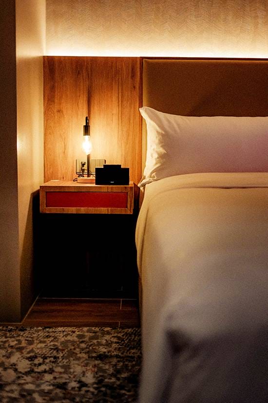 The Brittany Hotel Villar City experience is a well-crafted one, and one instantly feels the feeling of being in your very own luxurious home, as opposed to being a guest at a conventional hotel. The tone and story both start at the main lobby, and it is one of both warmth and grandeur: soothing hues give way to a symphony of textures—strong notes of Italian tiles, luxury stone details, and warmth of home from rich wood appointments. Drawing inspiration from the lush landscapes of Villar City, towering planters at the hotel lobby overflow with greenery, with Black Ironwood, Suamei, and Peruvian Ferns abound. A zen garden sits peacefully near the bar enclave, as if to signal the refreshing experience to come.