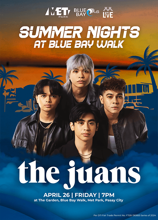 Blue Bay Walk and Met Live mall-goers have a chance to redeem free tickets for the one-night-only concert at The Garden of Blue Bay Walk. A minimum single-receipt transaction or accumulated receipts worth P1,000 will be entitled to redeem one (1) concert ticket and P3,500 above can redeem a maximum of four (4) concert tickets from any Blue Bay Walk and MET Live establishments made from April 12 to 26, 2024.