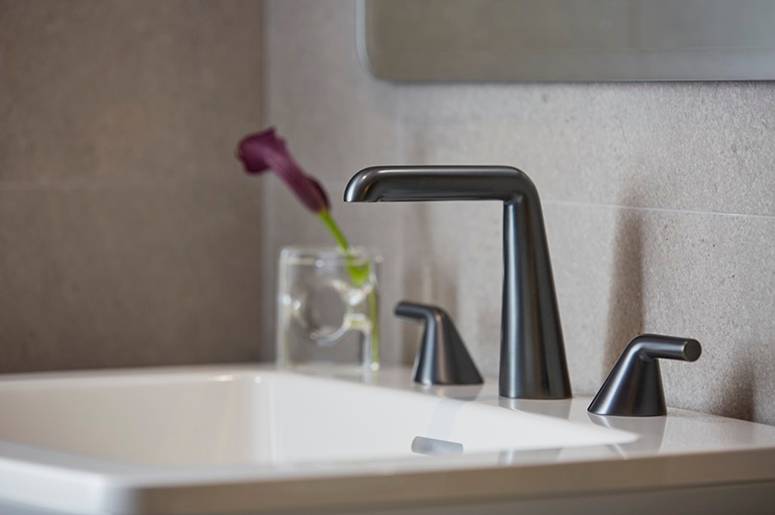 Sanitec also offers Kirar’s Kallista Foundations collection, which has gained popularity for its versatility. Whether your space leans traditional or contemporary, this collection seamlessly fits in. Standout pieces include the elliptical Myam Vessels, crafted from solid bronze that develops a unique patina over time. These vessels, available in matte black and white, are a striking addition to master baths, powder rooms, or even entertainment spaces.