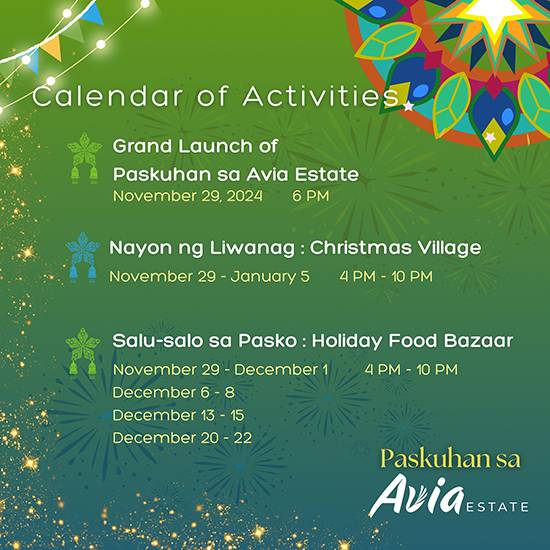 “As we expand our footprint across Mindanao, we remain steadfast in our mission to create spaces that enrich lives,” shared Miguel Rene A. Dominguez, President and CEO of Alsons Dev. “The Paskuhan sa Avia Estate celebrates both the holiday spirit and the vibrant community that supports us. We envision this becoming a cherished tradition for Sarangani residents.”