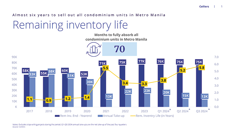 We are seeing stifled completion of new condominium units in Metro Manila. Tempered new launches would mean tempered take up particularly for condominiums in Metro Manila given the sizeable number of unsold pre-selling and completed/ready for occupancy (RFO) units right now in the capital region. We estimate that will take more than five years for these unsold units to be absorbed by the Metro Manila market.