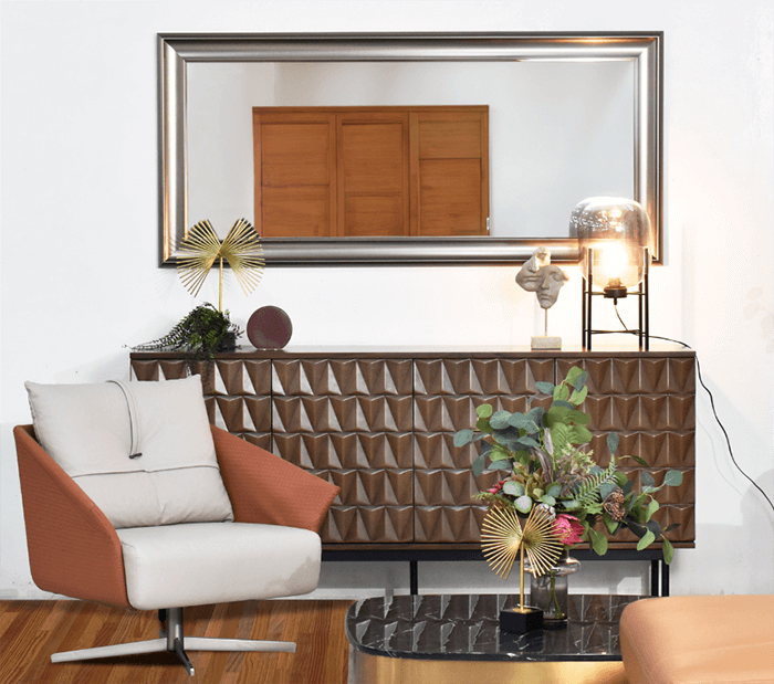 Mocha mousse works wonders when paired with metallic or neutral decorative pieces. Arrange Heim Centerpieces in clusters on your coffee table, shelves, or console tables for a balanced look. Choose centerpieces with bronze or gold details to elevate the warm tones of mocha mousse.