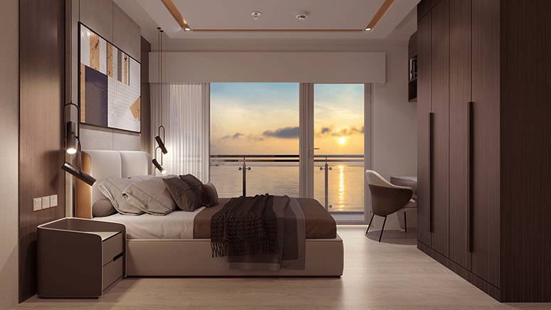A bedroom with Manila Bay sunset view at Sands Residences