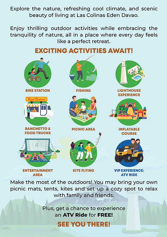 To introduce Las Colinas to the public, especially to the locals of Eden Davao, the event allows prospective buyers to explore the beauty of a lake community, the kind of lifestyle they can look forward to, and the possibilities they can embrace when they choose to settle.