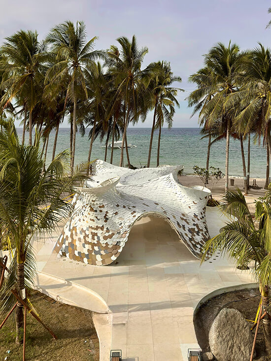 The resort is the creation of an international team of architects and designers who drew inspiration from local craftsmanship and mythology. Interiors by Patricia Ho Douven feature reclaimed Boholano wood panels and banig headboards, while Phillip Pond layered dining spaces with native iconography and mosaic murals. Patrick Keane’s natural rattan pavilions and the bioclimatic structures designed by Chris Singer and Prasasti Chenchin make sure the resort fully embodies the pristine beauty of its tropical surroundings.