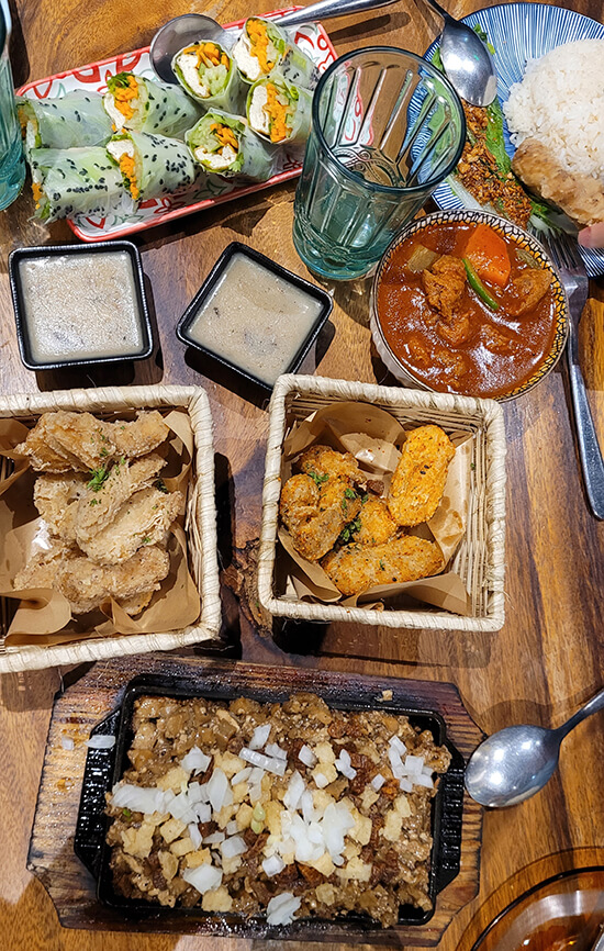 Cosmic is a well-known vegan Filipino restaurant and cafe known for transforming traditional Filipino comfort food into plant-based dishes. Here, you can find meatless versions of sisig, kare-kare, and sinigang in a cozy setting.
