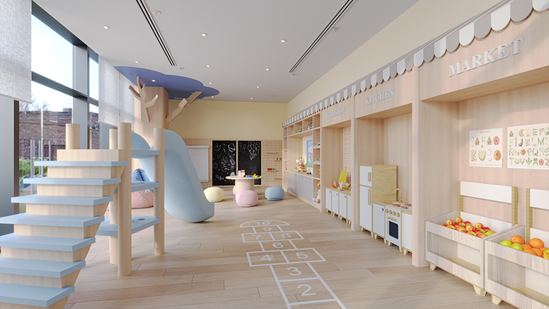 The children’s play area, thoughtfully designed for safe and engaging activity.