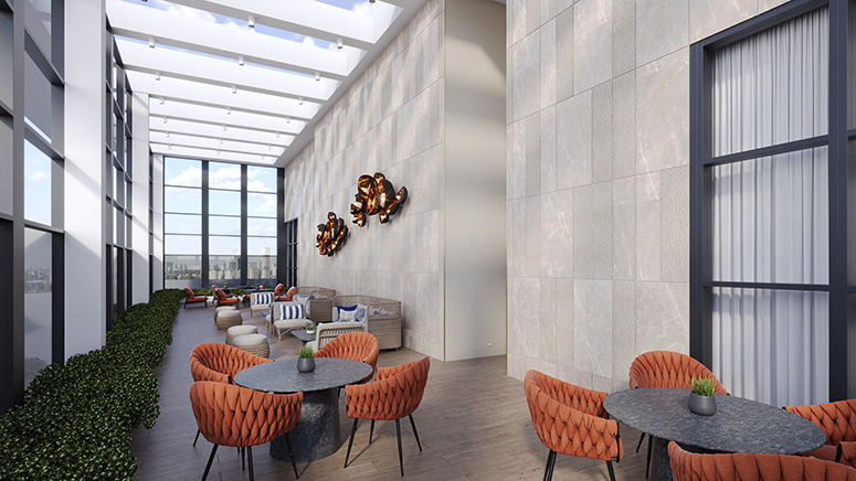• A Sky Lounge conceived as an indoor–outdoor retreat overlooking surrounding greenery