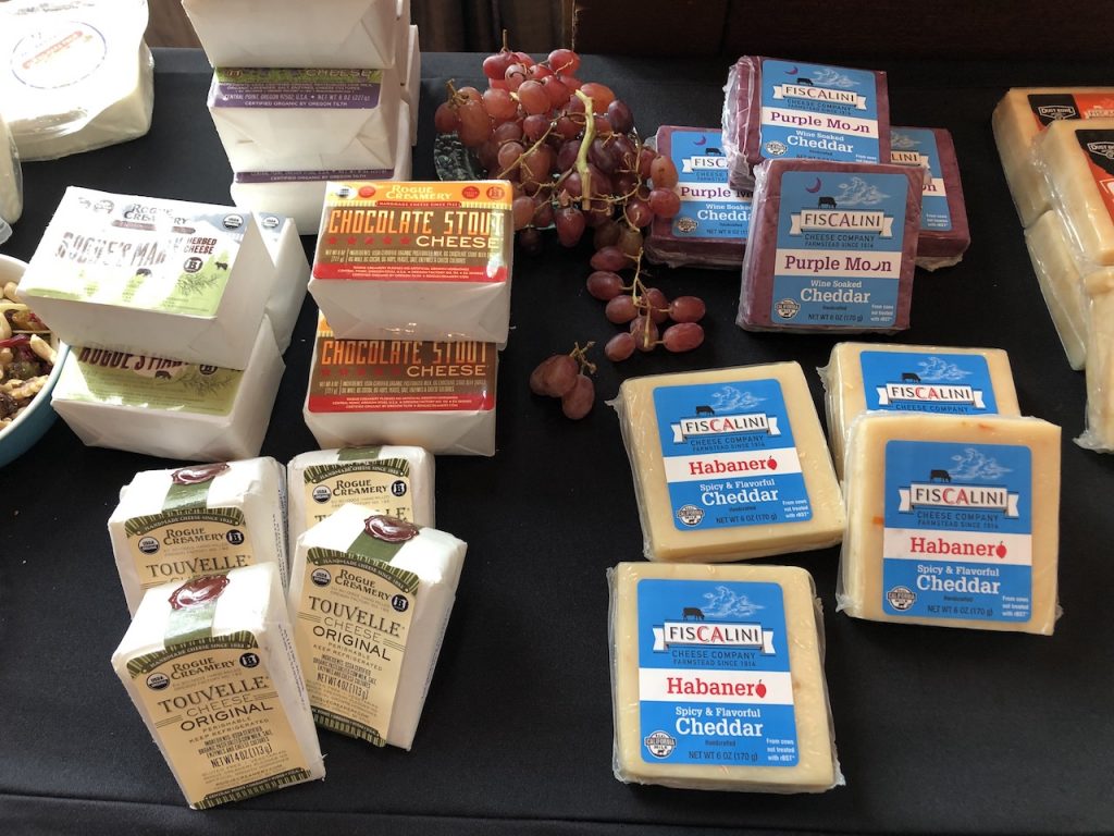 (Clockwise) Marin French Triple Crème Brie (perfect with Engkanto Pale Ale), Rogue Creamery Chocolate Stout (Kalinga Kolsch), Marin French Breakfast Cheese (Lapu Lapu Lager), Rogue Creamery Rosemary Cheddar (Fish Rider Pale Ale), Point Reyes Toma (Dumaguete Dubble), Fiscalini Bandaged Wrapped Cheddar (Dark Hat Porter), Vela Dry Jack (Cerveza Sagada Saison), and Point Reyes Original Blue (Exit Wounds IPA)