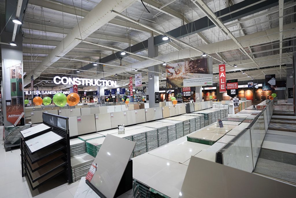 AllHome Builder’s Centre Evia is the newest addition to AllHome’s growing roster of stores. With a total floor area of almost 2,500 sqm, the newest store houses a wide selection of new and contemporary tile designs, modern sanitary wares, hardware items and comprehensive building material offerings.