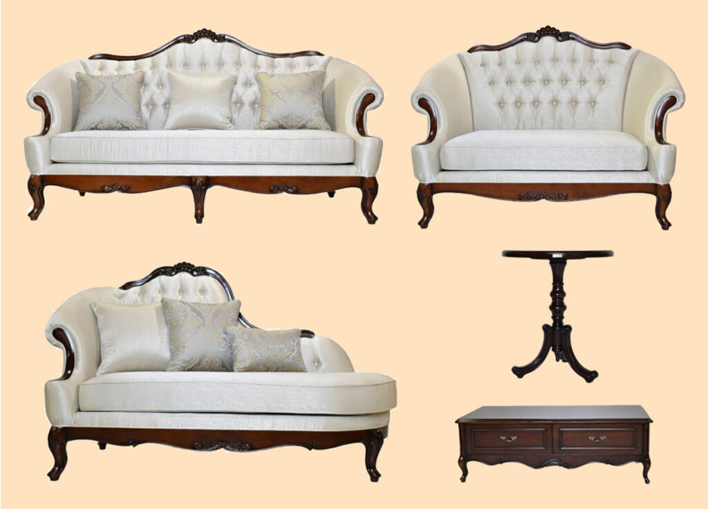 If you want to replicate the royal experience of relaxation, consider adorning your living room with cozy and comfortable furniture. Nobizzi offers a cream-colored sofa (two-seater or three-seater) and a chaise lounge for when you want to rest like a prince or princess. Chaise lounges are long couches with an armrest/headrest on one side. These sofas and lounges are upholstered and feature cushioned tufted buttons. The matching center table has a drawer and is designed to exude elegance and grandeur. Relax like royalty and impress your guests with these classic and show-stopping living room furniture pieces.