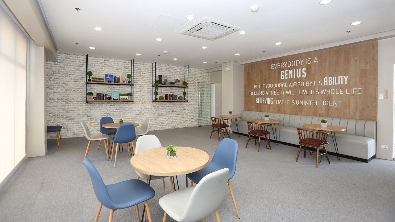 It has a wide frontage easily accessible via public transport. Two commercial establishments can be found in the front — All Day Convenience Store and Coffee Project. The entrance opens up to a wide lobby which can attend to guests and parents awaiting the arrival of their children for their routine weekend homecoming. Amenities include a fully-equipped gym and study hall, while the roof deck holds the multi-purpose function room and a meditation garden — an indulgence for such a heavily dense surrounding.