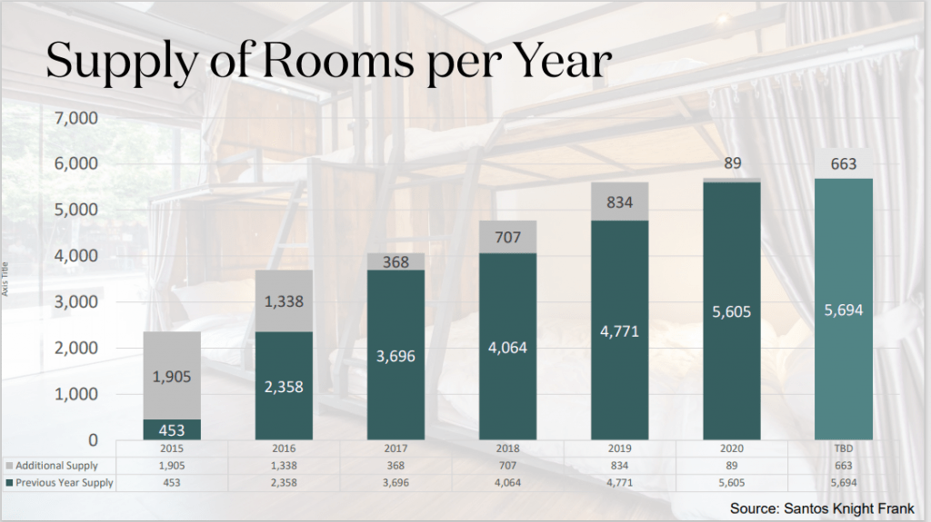 Supply of co-living rooms in the Philippines from 2015. GRAPH FROM SANTOS KNIGHT FRANK