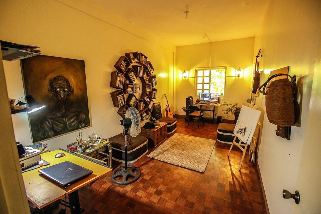 The idea was hatched because of the lockdown. In the beginning, he only wanted to build a unique bookcase. And then, he decided to turn it into a library. But it was still too bare — the room measures 20 by 10 feet — so he thought of building a Story Room, moving his painting materials, computer, and drawing table inside.