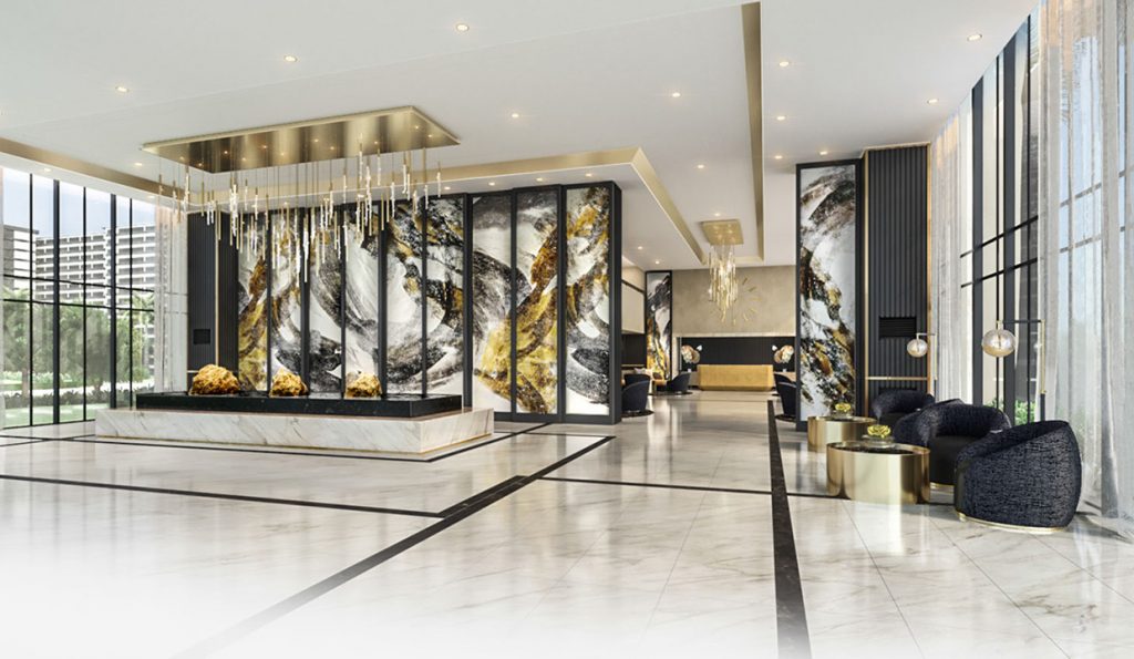 Inspired by the qualities of raw gold, prepare to be enamored with the glamorous interior of the grand lobby. Homeseekers and visitors will immediately be drawn with its tower panels featuring dramatic brush strokes with varying shades of gold.