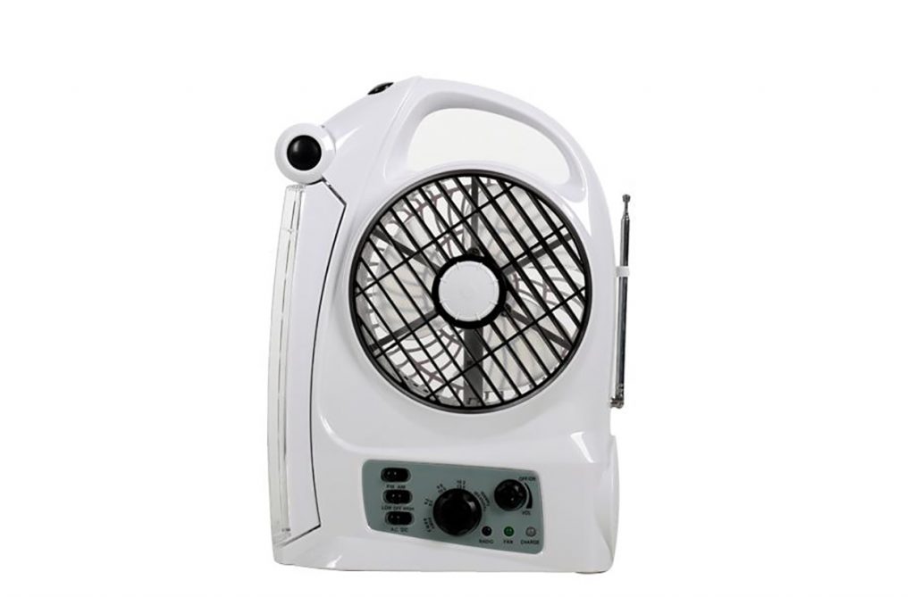 You can consider getting an Alphalux rechargeable fan that also comes with two built-in features: light and radio.