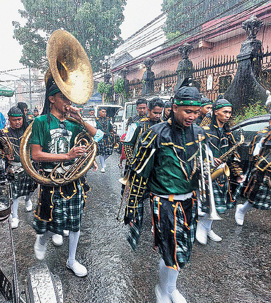 We were outside the church when it rained hard. While we were seeking shelter, a drenched marching band walked past us. They wore kilts similar to those worn by Scots, without the bagpipes. When the rains trickled, we decided to go back to our vehicle via tricycle. Since they were all full, we had no choice but to walk.