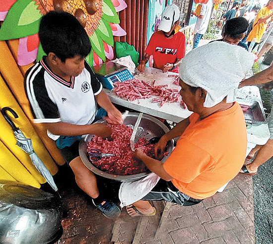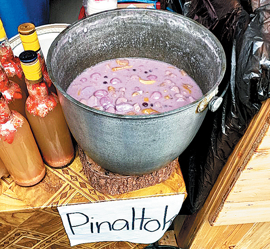 Lucban is also known for its food. During Pahiyas, longganisa was sold in almost every corner. Lucban longganisa is an aromatic and garlicky pork sausage which uses oregano, lean pork, pork fat, and coarse salt. It is red in color because of the paminton or Spanish paprika. In one stall, I saw longganisa being grilled. Another popular food is pansit habhab. What makes it unique is the way you eat it—with your mouth and without utensils. Instead of calamansi, you pour vinegar before gobbling it. I also tried “pinaltok” which is ginatan with gabi. There was a stall selling fried kiping and potato fries but I wasn’t able to try it. In nearby Sariaya, we tried tamales which is rice topped with slivers of chicken or pork, a slice of hard-boiled egg and crushed peanuts.